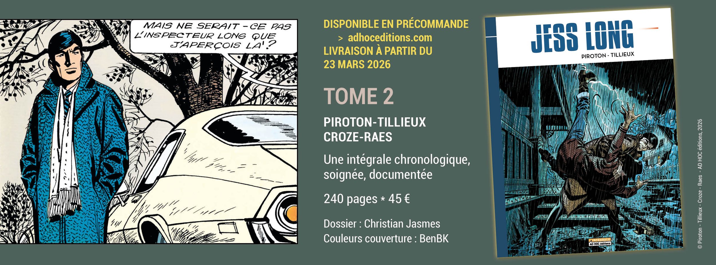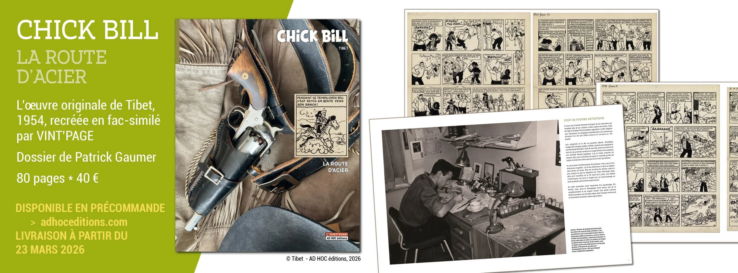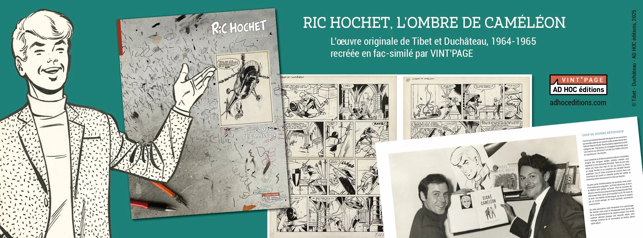Issu de la mythique série Ric Hochet, cet ouvrage atypique se distingue par une présentation sobre et maîtrisée, révélant tout le talent de Tibet sur les textes d’André-Paul Duchâteau. Sa reliure « fil apparent », aussi surprenante que pratique, permet une lecture à plat idéale pour apprécier les fac-similé des planches originales. Un livre pensé, élégant et exigeant, avec une introduction signée Patrick Gaumer.